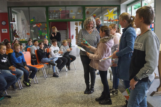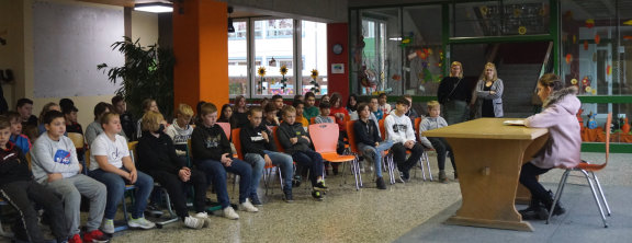 Den Vorlesewettbewerb des Deutschen Buchhandels gibt es seit über 60 Jahren. Schirmherr ist Bundespräsident Frank-Walter Steinmeier. An über 7000 Schulen nehmen mehr als 600000 Kinder der 6. Klassen aller Schularten teil. An der Mittelschule Auerbach beteiligten sich die Klasse 6a von Klassenleiterin Olga Kondibko sowie die Klasse 6b von Lehrer Thomas Bernet. Die 30 Schüler/innen hatten die vier besten Leser – je zwei aus jeder Klasse – ins Rennen geschickt.
