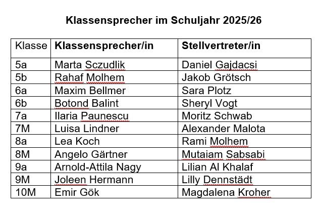 Unsere Schülersprecher wurden aus der Gruppe aller Klassensprecher gewählt.